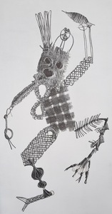 "Tovernarij" collage met lijntekening op papier.h50cmxb42cm. 2023