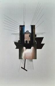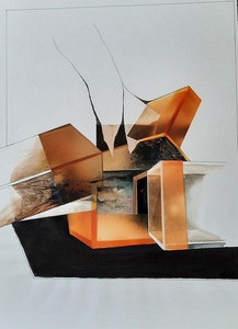 "Architectuur" collage en stift op papier.h50xb32cm. 2001